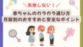 育児グッズ 【失敗しない!】赤ちゃんのガラガラ選び方|月齢別のおすすめと安全なポイント 赤ちゃんに初めて贈るおもちゃにがらがらを選びませんか?本記事では、がらがら(ラトル)を実際に購入し使用した筆者がおすすめの商品や使用方法、月齢に合わせた選び方を記事にしています。本記事を読めば、どのタイプのガラガラを購入すべきか明確になります。 2025.09.18 育児グッズ