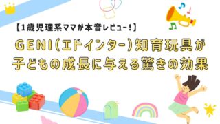 幼児教育 【1歳児理系ママが本音レビュー!】GENI(エドインター)知育玩具が子どもの成長に与える驚きの効果 1歳児ママが実際に3ヶ月使用して実感!GENI(エドインター)知育玩具の驚きの効果を本音レビュー。集中力5分→20分、発達テストでも月齢先行の結果に。他社比較・年齢別選び方・デメリットまで体験談で詳しく解説します。 2025.09.23 幼児教育育児グッズ